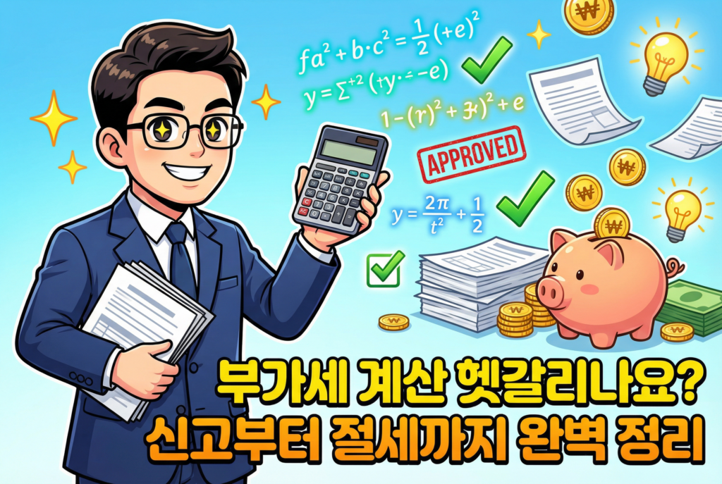 부가세 계산 헷갈리시나요? 공급가액·세액 자동 계산부터 신고 기한, 절세 전략까지 2026년 기준 완벽 정리. 국세청 공식 자료 기반 신뢰할 수 있는 실전 가이드! 일반과세자 vs 간이과세자 선택, 환급 받는 법, 가산세 피하는 법 포함 (150자)